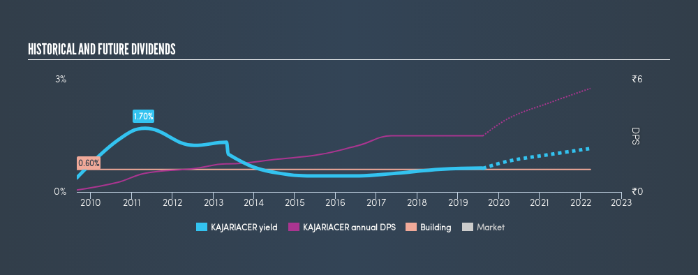 For the year ending march 2020 kajaria ceramics has declared an equity dividend of 300 00 amounting to rs 3 per share.