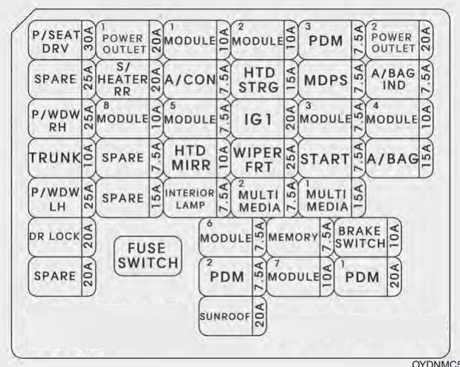 Kia forte 2009 2012 fuse box diagram.